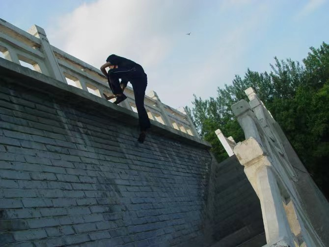 2009年5月有幸结识了中国飞檐走壁第一人葛强老师,非常认同其中国传统文化理念,并被其人格魅力折服。在练习跑酷同时学习尚行功夫,同年11月正式转投尚行门下。