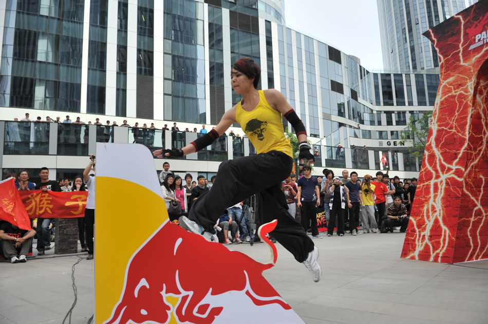 第二届红牛全国极限跑酷大赛在北京三里屯SOHO落幕。值得一提的是,本届大赛首设女子组竞赛,三项赛事都有女性成员参与,这一组别的设置,不仅是中国、也是世界跑酷大赛的首例。